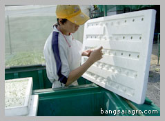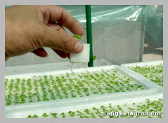 | 4. | นำต้นกล้าที่เตรียมไว้ลงแผ่นปลูกที่เตรียมไว้ให้ครบทุกแผ่น (ควรปลูกตอนเย็น) | ||