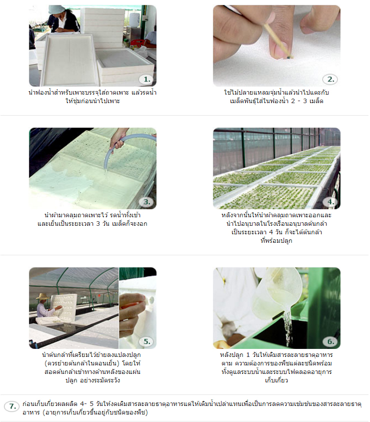 (ส่วนด้านบนของถาดปลูกจะถูกปิดด้วยแผ่นโฟมที่มีรูสำหรับปลูกพืช)